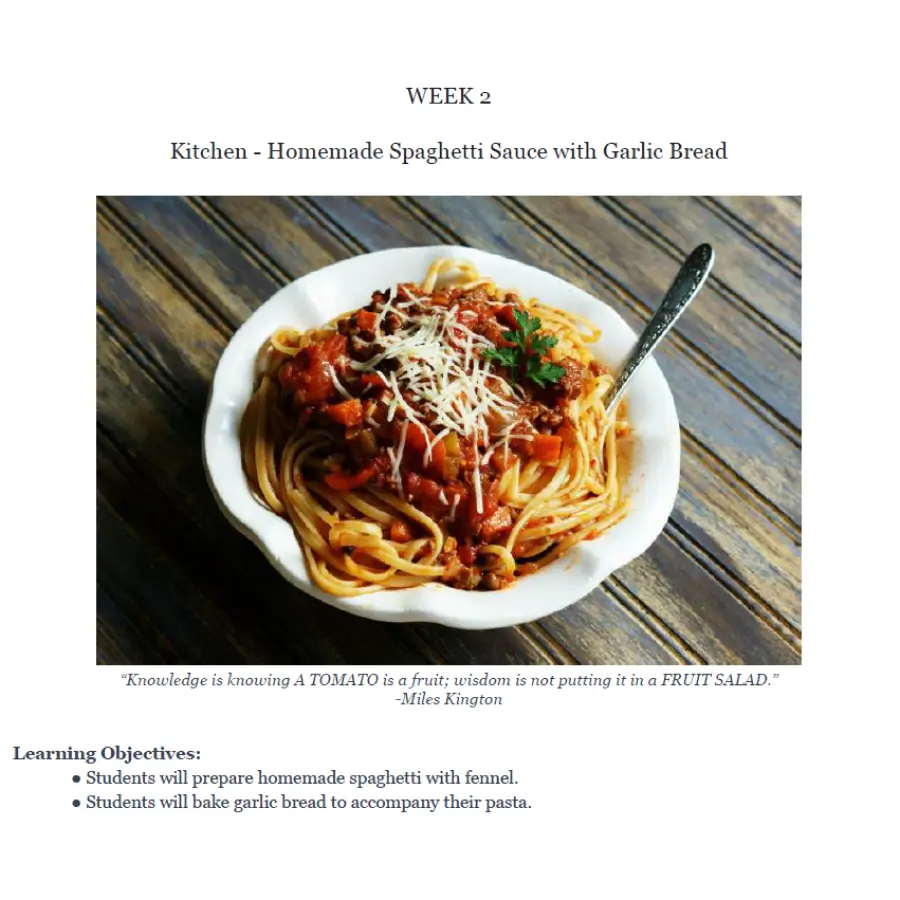 In the kitchen, students apply their learning by preparing two classic sauces: a fennel-infused marinara and a bright, flavorful basil pesto. They explore layering flavors and the cultural roots of Mediterranean cooking.